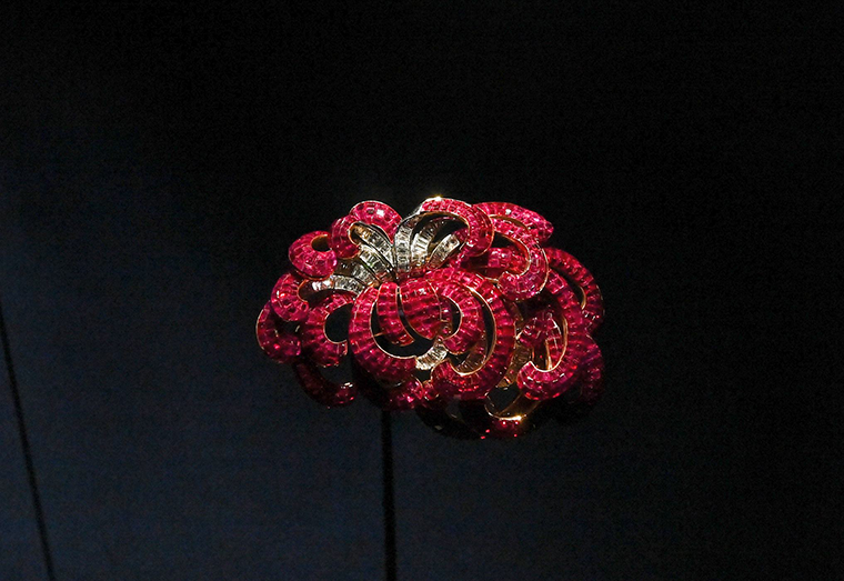マヴィエルソネ氏は、4章構成となる展示内容に触れた。グランプリ作品を含むアール・デコ期のハイジュエリー、メゾンが成長し、ミステリーセッティングをはじめ、様々な特徴的な技巧を確立するまでを「時系列で紹介している」とし、そのイノベーティブな精神を「今も受け継いでいる」とした。
