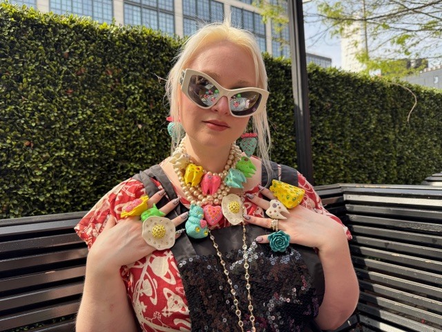 ニューヨークファッションウイークの最中、あるプレゼンテーションに向かうエレベーターの中で一緒になった女性が、とてもポップで個性的なジュエリーをじゃらじゃらつけていた。思わず「それ、いいわね!」と声をかけたら、自分でやっているブランドのだというので、早速インスタグラムを教えてもらった。名前は「ドールチャンク」。チャンキーなジュエリーにぴったりの名前で、その後フォローしていてずっと気になっていたので、改めてデザイナーのクリステン・ベイトマンさんにお話を伺った。