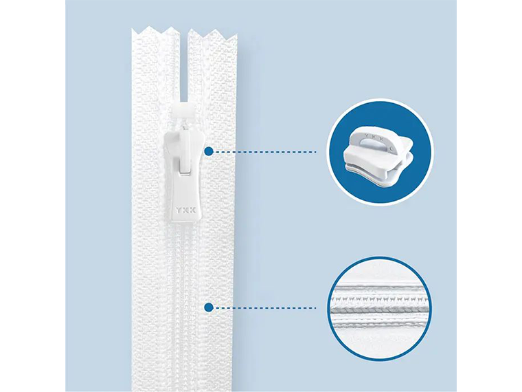 ファスナーのエレメント(噛み合わせの歯の部分)の両側にある生地の内側を盛り上げ、スライダーの形状にも工夫を加えた。一般的に掛け布団で使われる薄い生地を用いて社内試験した結果、従来のファスナーよりも布噛みの発生率が低減されることを確認した。