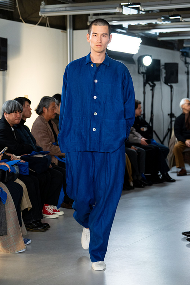 「働くことは強く生きること」と、強さを70年代のフラワーチルドレンの大きな花柄で描いたコートも目を引く。ショーの最後は濃いブルーのシャツジャケットとパンツ。かつてのフレンチワークを思わせる、ブル・ドゥ・トラバイユで締めくくった。