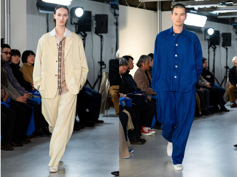 エイ・ネットの「ズッカ」は、新デザイナーに馬場賢吾が就任して初めての26年春夏コレクションを発表した。同社の仕事を象徴する場所である東京・新大橋オフィスの広いフロアでショーを行い、東京・青山の旗艦店での展示会でシーズンのラインナップを見せた。