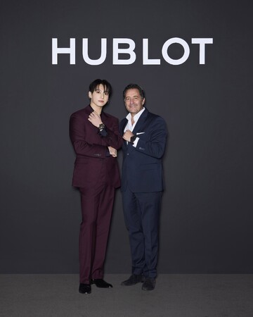 LVMHウォッチ・ジュエリー ジャパン株式会社 ウブロHUBLOT 新グローバル ブランド アンバサダーのジョングク(左)とウブロCEO ジュリアン・トルナーレ(右)2026年2月12日 - 韓...