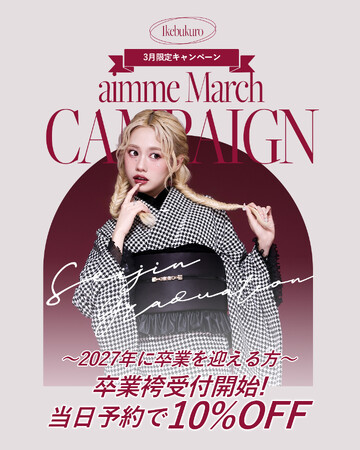 有限会社三景スタジオ振袖&卒業袴レンタル専門店「aimme東京池袋店」 3月限定キャンペーンを実施中!2025年11月27日(木)にオープンした、振袖・卒業袴レンタル専門店「aimme(エイミー...