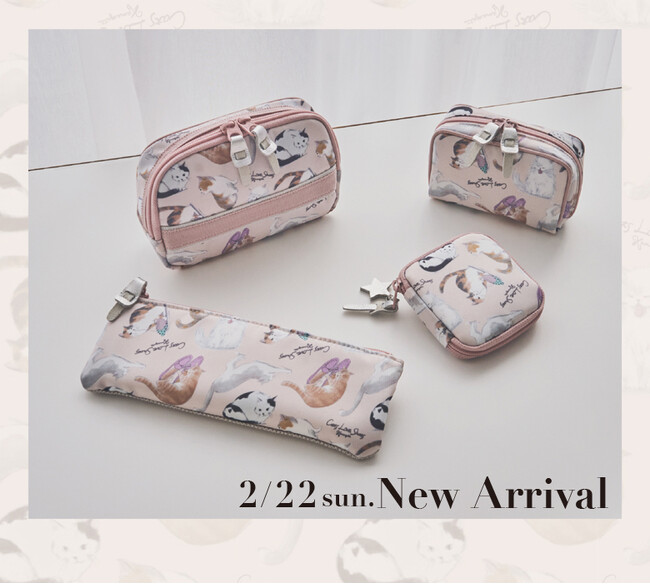 株式会社かねまつ2/22(日)猫の日に合わせ、愛嬌たっぷりで表情豊かな猫たちが描かれた新作ポーチが登場します。展開アイテムは、ポーチ2サイズ、ジュエリーポーチ、そして新生活にもピッタリな歯ブラシ...