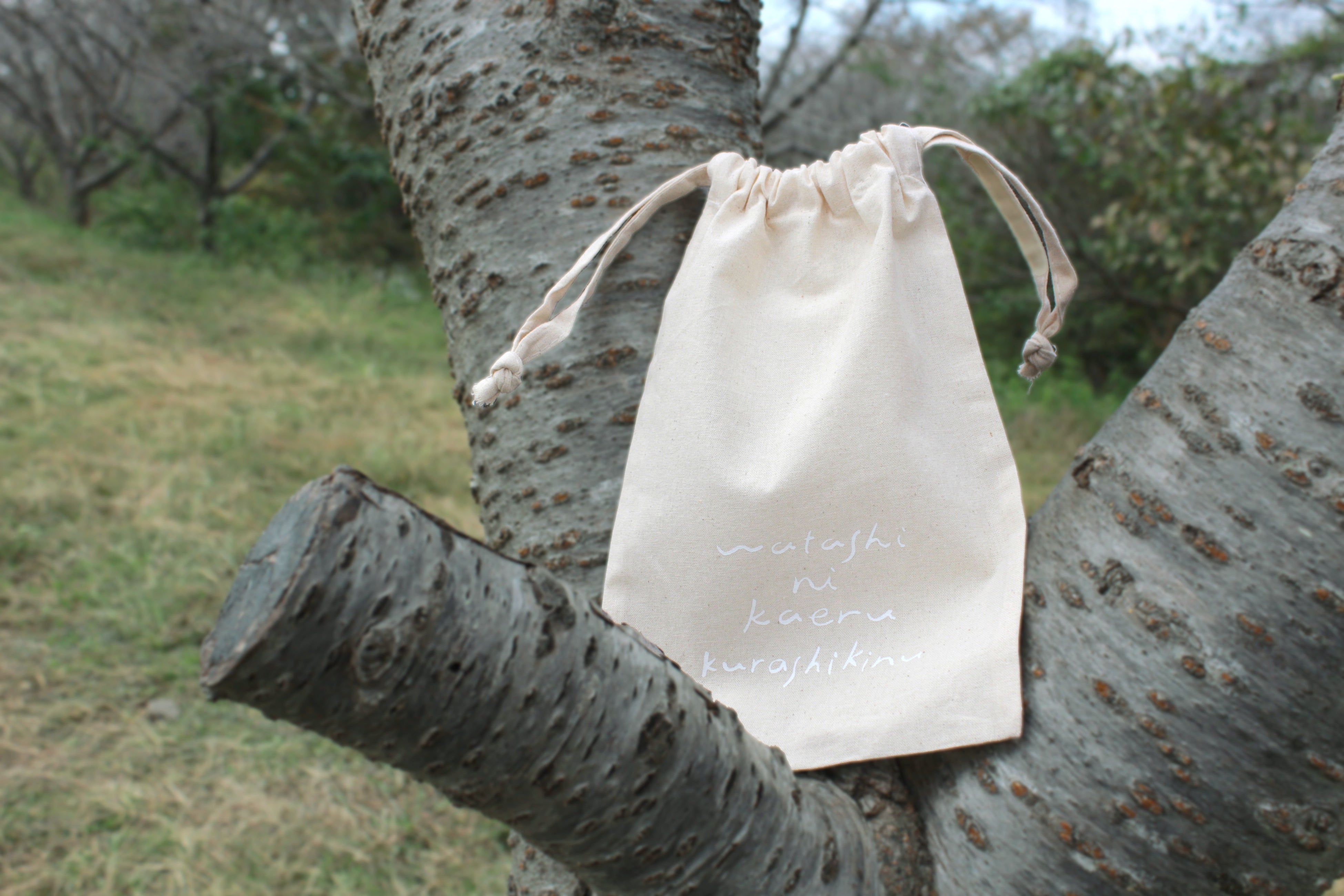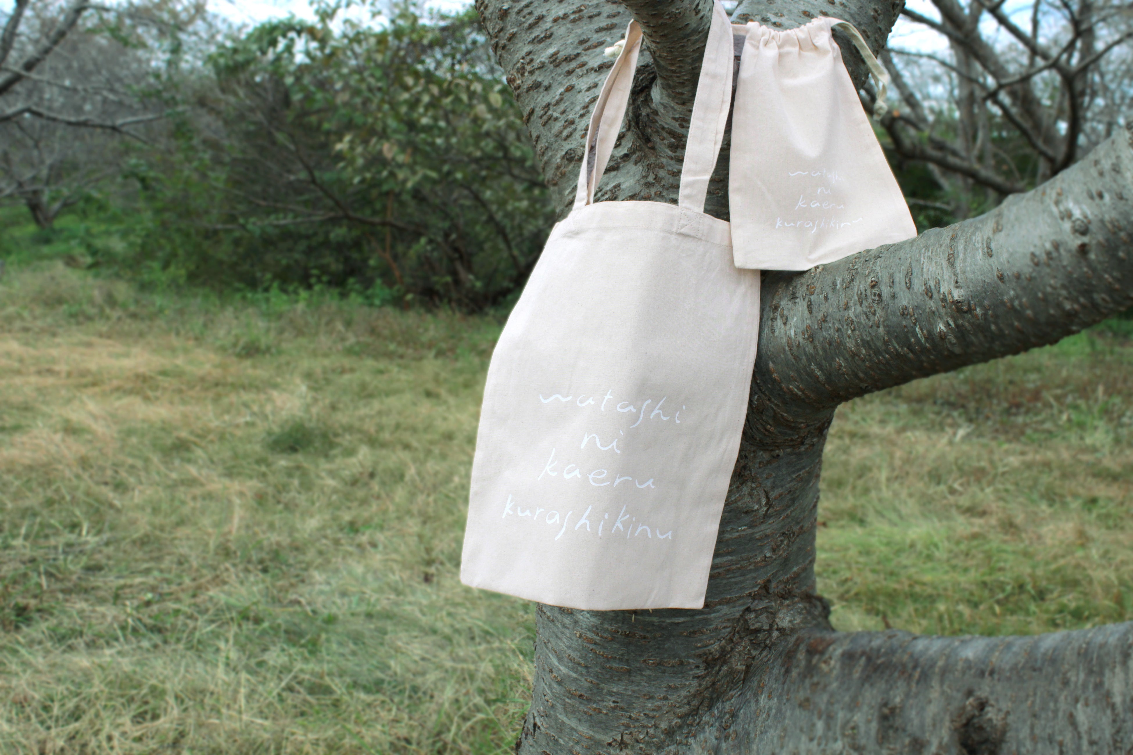 くらしきぬは、本POPUPストア限定のノベルティとして、ブランドの新コンセプト「わたしに還る、第一歩」にちなみ、「watashi ni kaeru」の文字をあしらったオリジナルグッズを制作いたしました。