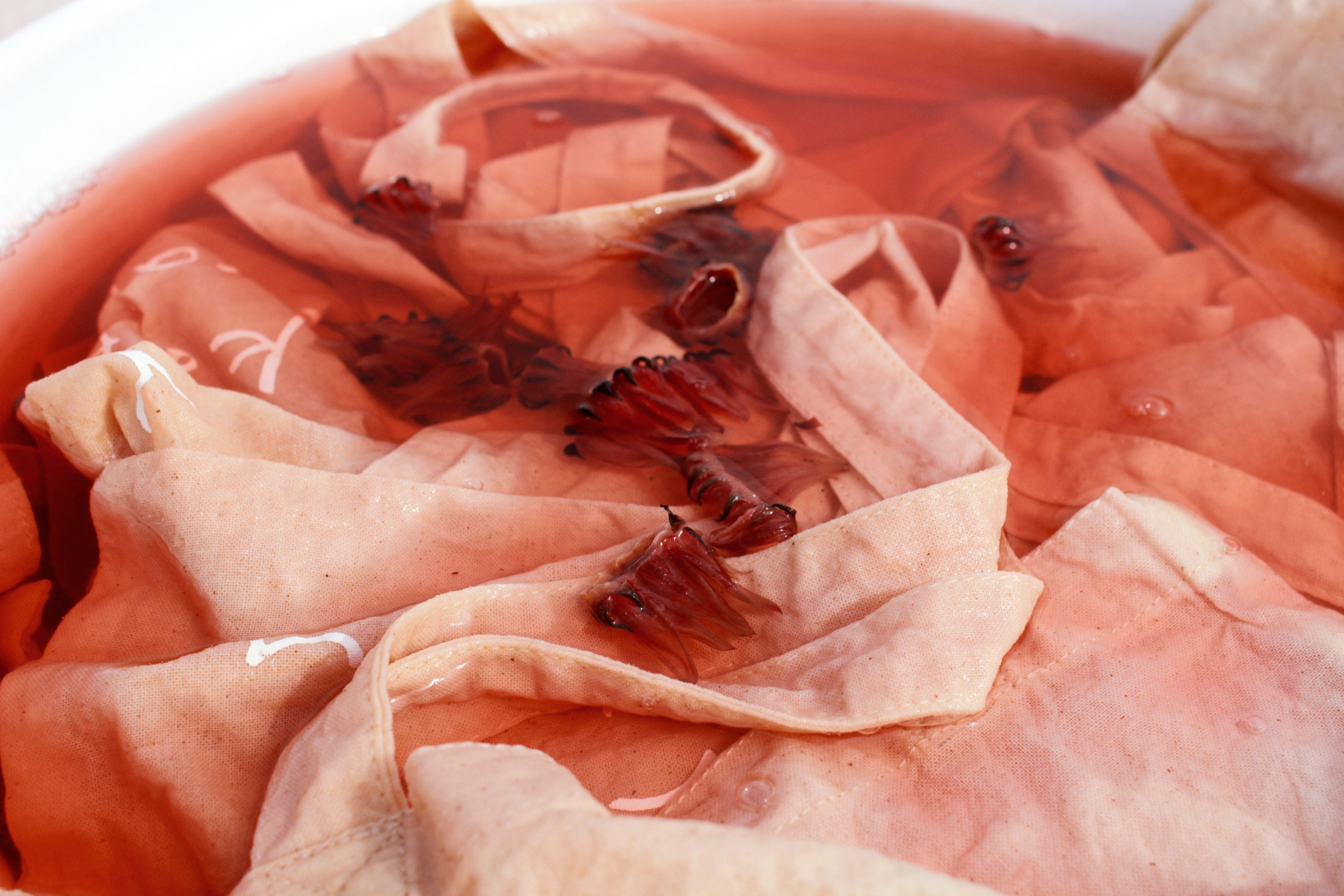 「びわの葉」や「茜」、「ローゼルハイビスカス」から色を抽出