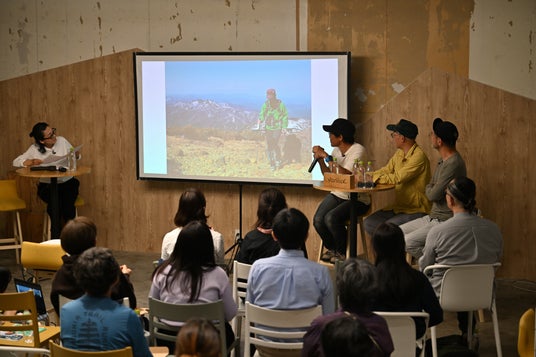本イベントではトークゲストとして、アウトドア界で活躍される1970年代生まれの3人、高橋庄太郎さん(山岳/アウトドアライター)、土屋智哉さん(ハイカーズデポ店主)、大内征さん(低山トラベラー/山旅文筆家)にご登壇いただき、司会には鈴木みきさん(イラストレーター)をお迎えして、「登山と老眼」をテーマにお話しいただきました。ありそうでなかったテーマでも、ご応募人数は定員の倍以上。同じ困りごとを共有する多くのお客様からの関心が集まり、「安全で快適な登山のための眼への装備」に焦点を当てる貴重な機会となりました。