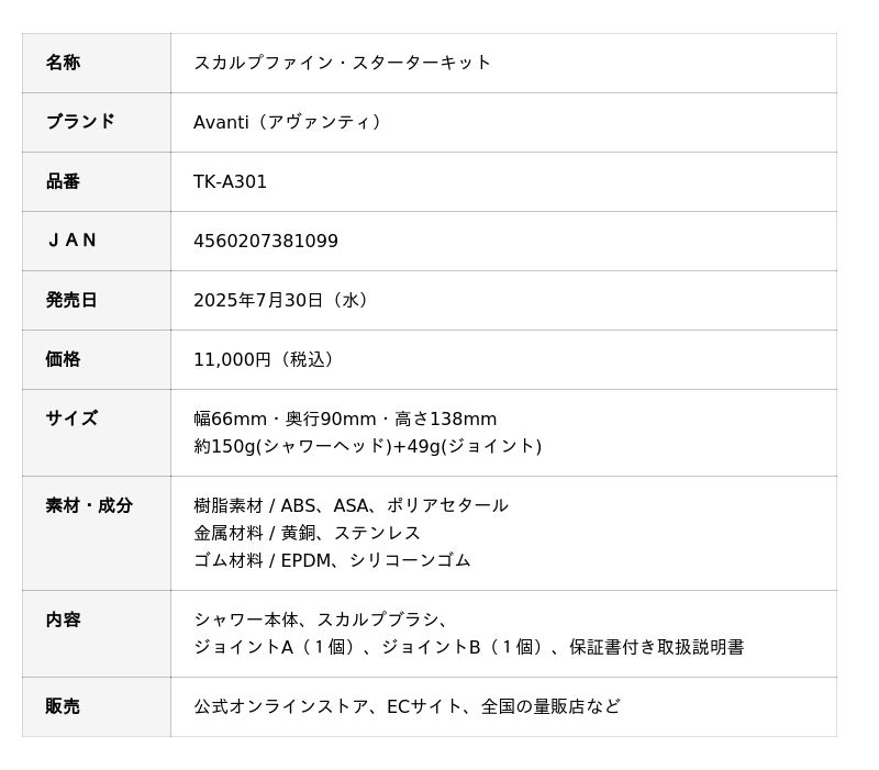 株式会社TKS(岐阜市、代表取締役社長:岩永信幸、以下、当社)は、ブラシ一体型ファインバブル(※1)シャワーヘッド「スカルプファイン・スターターキット」を2025年7月30日(水)に発売いたします。メーカー希望小売価格は11,000円(税込)。