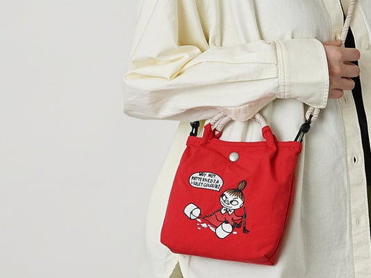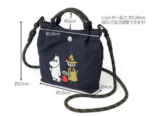 新登場のムーミンの2WAYミニバッグは、取り外し可能なロープショルダーで利用シーンに合わせてショルダーにもトートにも使い分けが可能。また、軽量で軽はっ水加工もあるので機能性もあるバッグです。