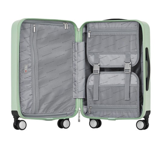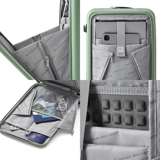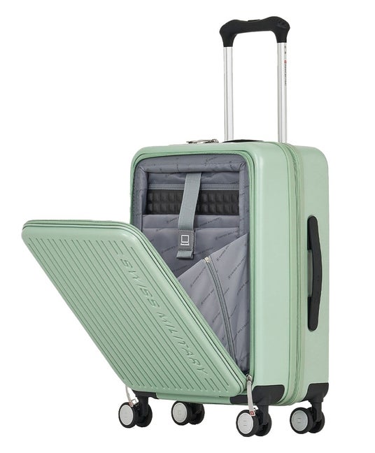 新シリーズ「AVENTURA」は、ボディ素材に弾力性と復元力に定評のある100%ポリカーボネートを採用し、SWISS MILITARYの旅行用スーツケースのなかでも最高クラスの耐衝撃性能を実現。さらにアンチスクラッチ処理で傷がつきにくく、耐久性にも優れています。本体前面には効率的な収納と便利に使えるフロントオープン構造のドアが装備されているので、移動中に出し入れが必要なノートPCやパスポートなどの出し入れも簡単に行なえます。