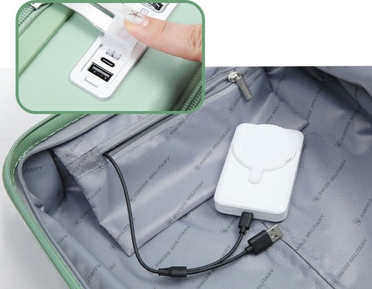 移動中でも安心。充電USB充電ポートTSロックにType-AとCのUSB充電ポートを装備。スーツケース内部にモバイルバッテリーを接続しておけば、スーツケースからモバイル機器を手軽に充電できます。(モバイルバッテリーは付属していません)