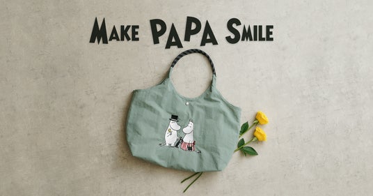 ムーミンパパとムーミンママの微笑ましい刺繍アートの新作トート。父の日の贈り物にもおすすめです。かさばるアイテムをざっくり収納でき、トップにはニョロニョロが刻印されたスナップボタン付き。おしゃれなハンドルロープの持ち手は長めにデザインされているのでアウターを着用していても肩にかけて使用でき、生地はナイロン素材で、軽撥水加工で急な小雨に対応します。
