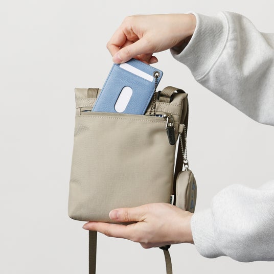 前後にある二つのポケットに、キーフック。必要最低限 を 身にまとって お出かけ できる、スマホ+α の サイズ感。