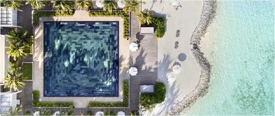 日本からマレへ、空を越えておよそ九時間。そこから、さらに水上飛行機に揺られ、環礁を渡る長旅は、退屈な移動ではなく、日常を忘れるためには欠かせない旅路です。群青の海と空に抱かれながら進むその時間に、こころは澄み、感覚は研ぎ澄まされるでしょう。そして、黄金の砂に足をおろせば、モルディブの濃密な自然とフランスの洗練された「アール・ド・レセヴォア」からうまれる光と静寂が、来訪者を包み込みます。