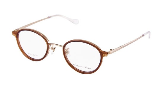 親しみやすいボストン型のインナーリム※デザインに、さりげなくフォックス要素をプラス。透明感のあるプラスチックカラーが柔らかさを、メタルテンプル(つる)の彫金が横顔を上品に引き締め、知的でほどよく華やかなデザイン。