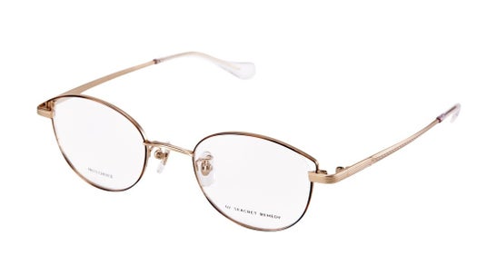 ウェリントン型をベースにした華奢でやさしい表情のメタルフレームに、目尻が鋭角に上がったフォックスラインが、凛としたアクセントを添えます。リム(レンズ枠)の表面に施したセミマット七宝には、肌なじみのよい上品な色を選びました。細身ながら、掛ける人の個性を際立たせる洗練されたデザインです。