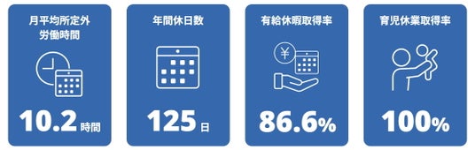 当社の2024年度の月平均所定外労働時間は10.2時間、育児休業取得率は2023年度、2024年度と2年連続で男女ともに100%を達成しています。コスメディ製薬は研究開発型企業だからこそ、従業員の力が何よりも大切です。2024年度の有給休暇取得率は全国平均65.3%※4を大きく上回る86.6%でしたが、この度導入した時間単位年次有給休暇制度により、通院や育児、趣味の時間など、さらに従業員の人生が充実することを期待しています。