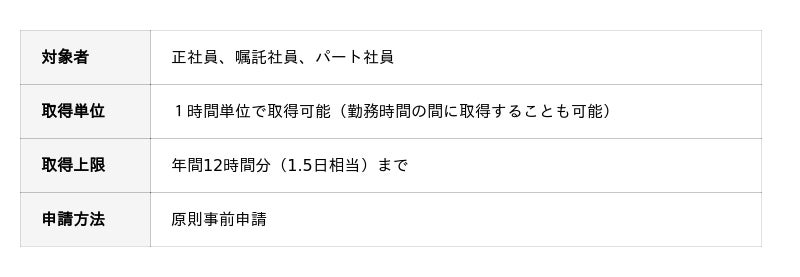 制度スタート時は上限を年間12時間分(1.5日相当)とし、年次有給休暇の本来の目的である「まとまった日数での取得」と両立させています。
