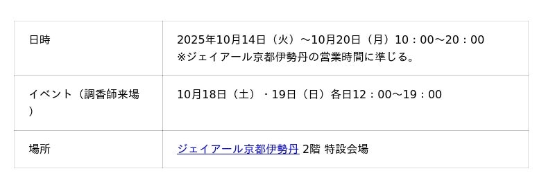 みずみずしい植物のパワーと香りを活かしたスキンケア、ボディ&ヘアケア、メイクアップ、フレグランス製品を展開するメゾンレクシア株式会社(本社:大阪市西区、代表取締役社長:木下 光貴)は、2025年10月14日(火)から10月20日(月)の7日間、ジェイアール京都伊勢丹 2階 特設会場にて、期間限定のポップアップショップを開催いたします。