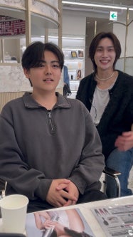 夢を抱くお客様の要望と連動させ、髪型・カラー・表情を一気にゲキヘン。仕上げ後の「イケてる!」空気感がそのまま笑顔に出ていて、ポジティブなムードが映像越しにも伝わりました。