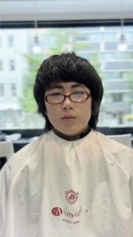 声優オーディションのために気合で坊主に。それから8か月伸ばしたクセ毛でボリュームある髪をカット。GEKI→HEN後の髪型はもちろん、店を後にするお客様の自信に満ちた表情にも注目です。