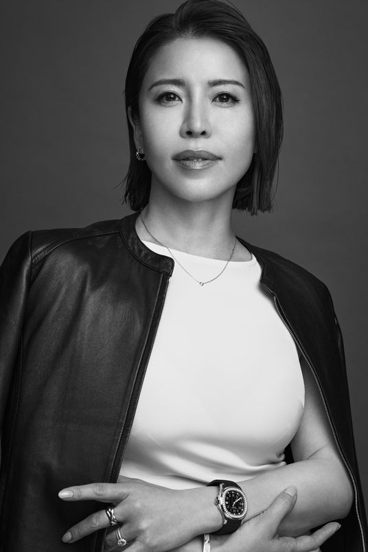 媚びない美しさと力強さを持ち合わせた、内田氏のアートと調和するモード感あるスタイル