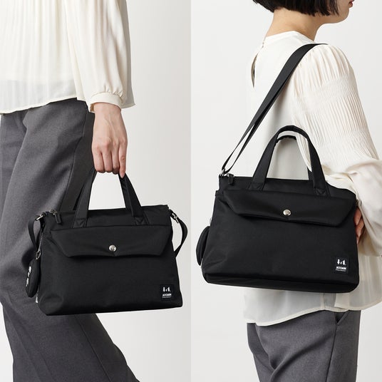 ショルダーストラップ付きの2wayバッグなので、肩掛けや斜め掛け、手持ちとコーデに合わせて楽しめます。