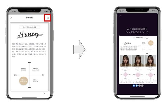 2.右上の共有ボタンをタップすると診断結果を一覧できます