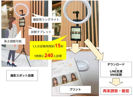 イベント内では、独自のAI技術を駆使し、お客様の顔のタイプ・黄金比・肌状態の分析を行いあなたに合ったコスメのご提案を致します。お一人おひとりに最適なメイクやスタイリングを提案する「フェイススキャン診断(R)️」を体験いただけます。AIだからこそ可能な客観的かつ緻密な診断で、自分に似合うヘアスタイルやメイクを知り、さらに美しくなるためのヒントを見つけることができます。
