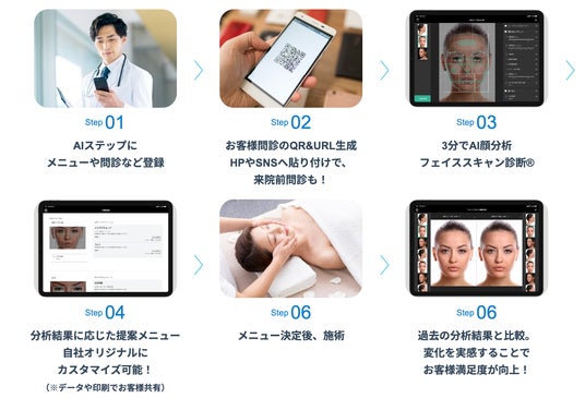 自開発のフェイススキャン診断(R)を中心とする、美容サロンやクリニック向けのAIエンジン搭載のDXツールです。