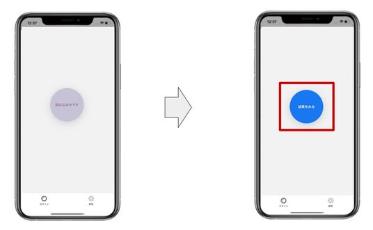 1. 撮影ボタンをタップします1.お顔の撮影後、約5秒ほどお待ちいただくと結果が確認できます。
