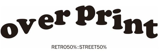 over printretro50% : street50%をコンセプトに掲げ、オンラインストアと全国19店舗のセレクトショップを中心に展開するストリートブランド。00年代裏原宿ストリートスタイルを軸に、ロック/スケート/ワーク/ミリタリー/古着/90Sコミック、アニメなどとレトロミックスし「今の気分」として提案。