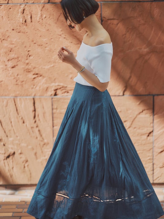 COTTON DOBBY IVY FLOWER EMBROIDERY SKIRT ¥33,000 (tax in)