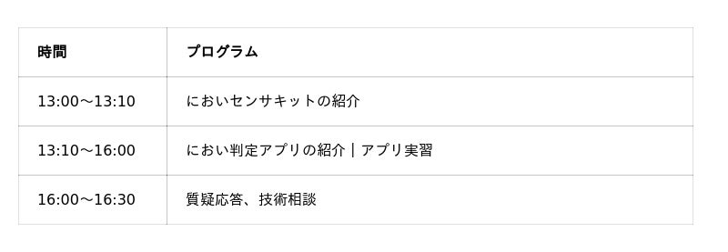 ・ソフト:「におい判定アプリ」によるにおいデータの学習・判定を実演します。