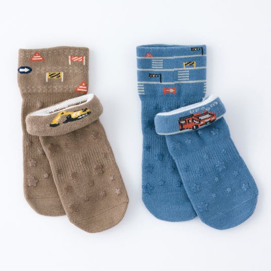 【いつもまえむきくつした】はたらくくるま(カラー:ブラウン、ブルー)