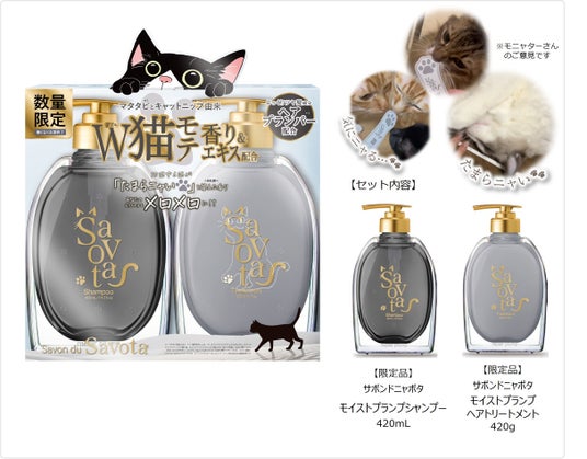 アンド・ナイン株式会社/(本社:東京都港区、代表取締役社⾧CEO:加藤修)は、“めんどくさい”を応援するサボテンヘアケア・サボンドサボタより、思わずお風呂に入りたくなる!?数量限定の猫モテシャンプー「サボンドニャボタ」シャンプー&トリートメントセットを2026年2月上旬より全国のドラッグストア・バラエティショップ等で数量限定発売いたします。