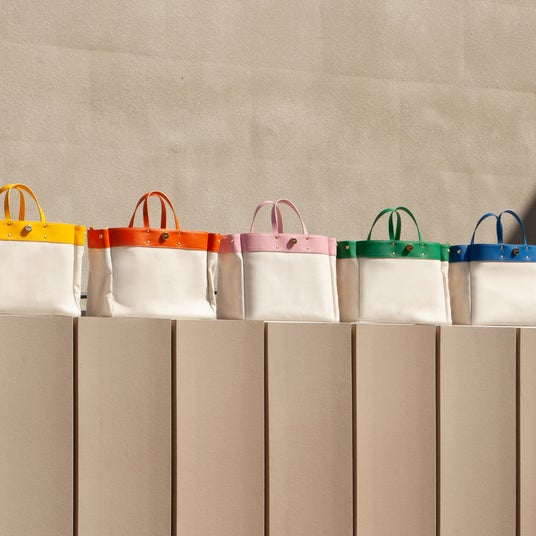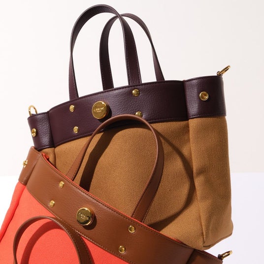 シンプルなキャンバス素材に、鮮やかなレザー素材のワンポイントを施したシリーズ。