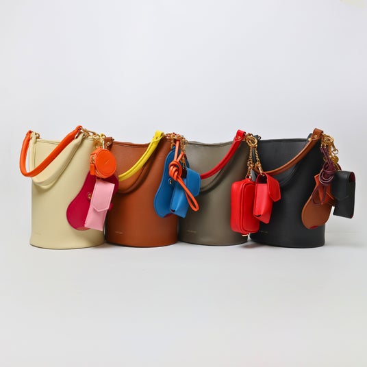 さまざまなカラーのバッグとチャームを組み合わせて、自分らしいコーディネートやギフト