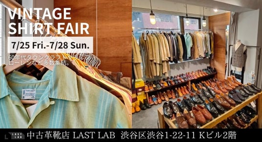 革靴専門店のラストラボが2025年7月25日(金)~7月27日(日)の期間【VINTAGE SHIRT FAIR】を開催します。市場でも徐々に高騰しつつあるヴィンテージシャツを集めたフェアを開催いたします。