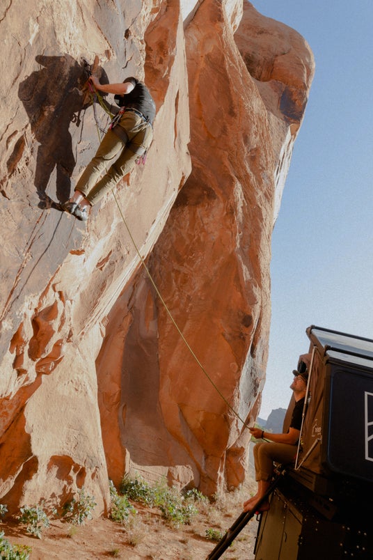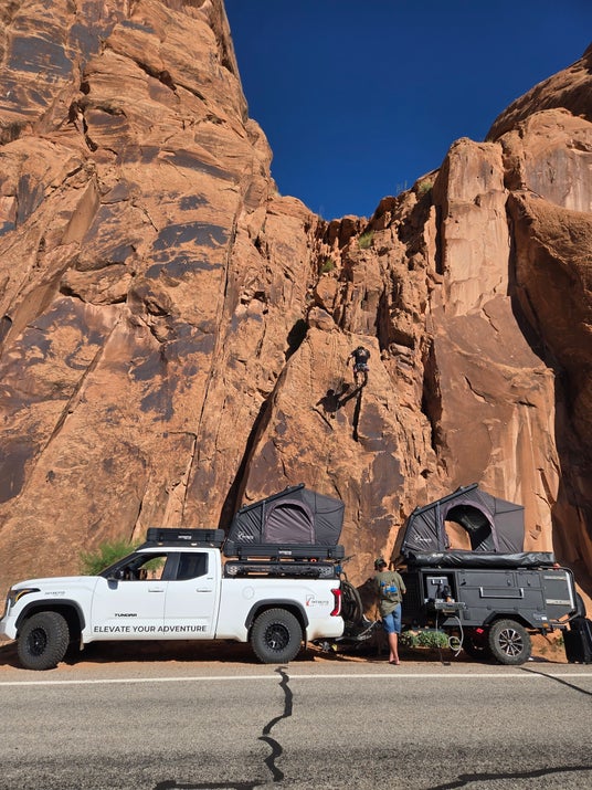 垂直の崖を登るロッククライミングツアーの最中、私のRolling Duffleが崖下へ転がり落ちてしまった場面もありました。