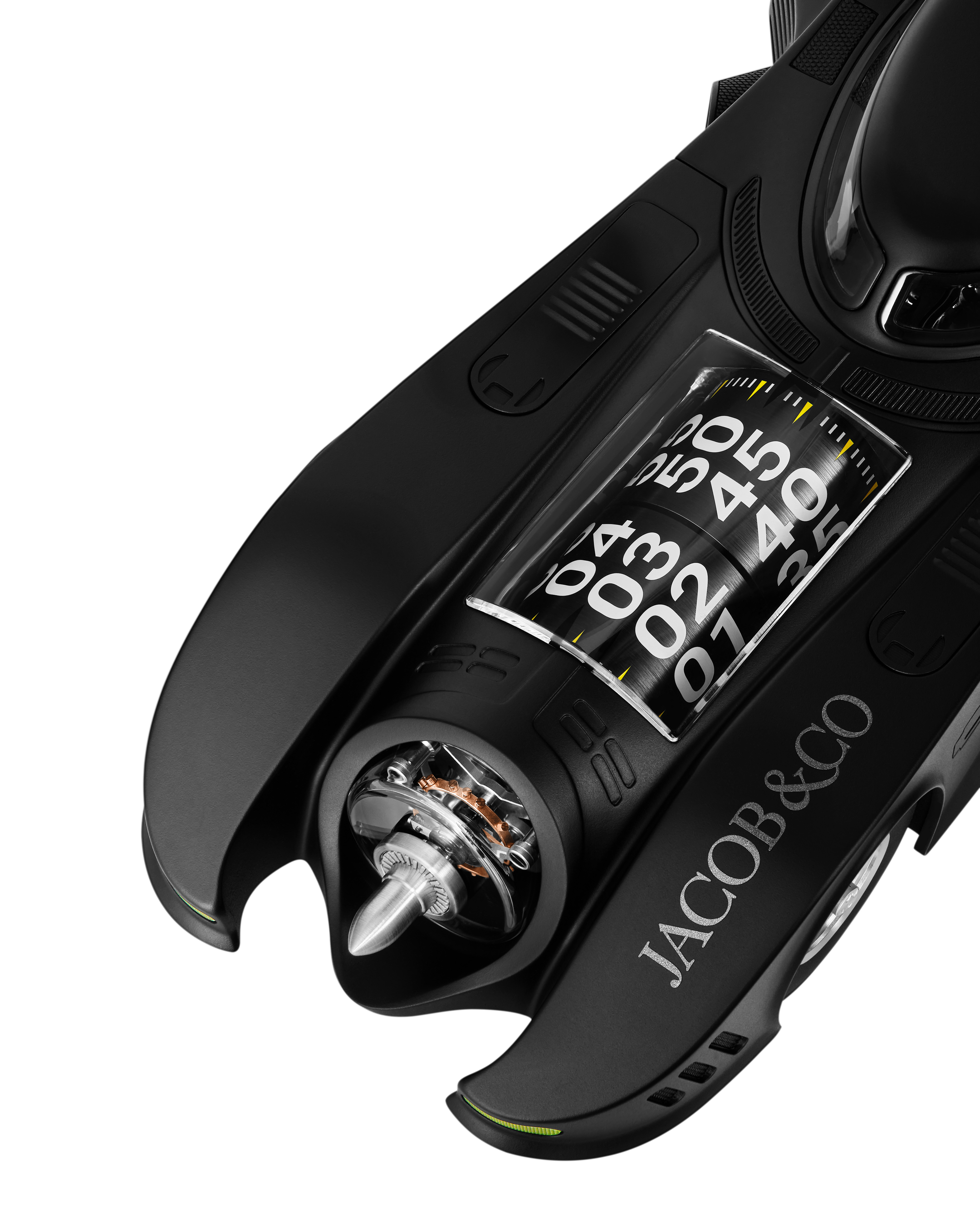 明確にバットマンという題材を掲げながらも、その表現はキャラクターの象徴性やビジュアル演出にとどまるものではありません。本作の中核を成しているのは、ツイン3軸フライング トゥールビヨンをはじめとする、ジェイコブ&コーが長年にわたり培ってきたハイコンプリケーションの技術です。これらの複雑機構は、単なる機能的誇示ではなく、プロダクト全体の構造と一体化するかたちで組み込まれています。