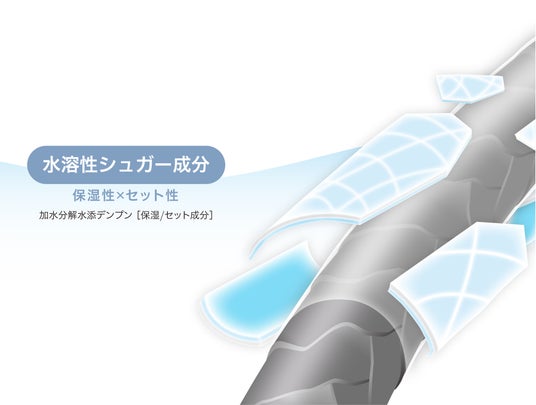 ホロホロと水で流れやすく、洗浄成分の泡立ち向上作用もある水溶性シュガー成分*²が、うるおいとセット力をかなえます。