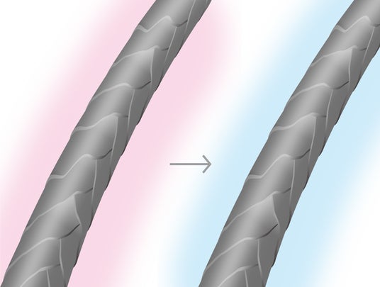 ヘアアイロンは髪内部の結合を熱で切断し、冷えることで再結合する性質を利用しています。配合されている補修・保護成分が温まりやすく冷めやすい性質があるため、通常より設定温度を下げても、形をキープできます。