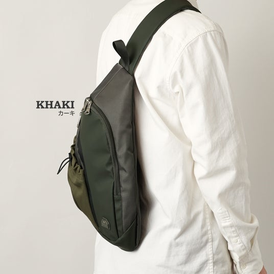 ミリタリーな雰囲気を持ちつつ、ワントーンで表現したショルダーバッグは都会的な印象も与えるスタイリッシュな仕上がり。ON/OFF兼用で使えます。