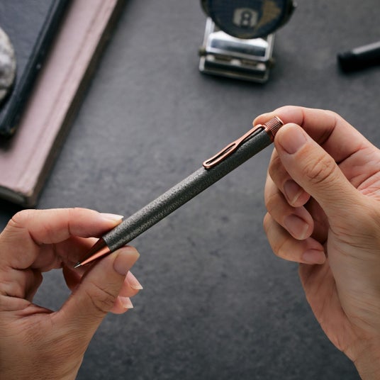 「SAKURA craft_lab 010」は、“不均衡の美学。”をコンセプトとした、ハンマートーン塗装による凸凹感のある表情豊かなボディが特長のボールペンです。ハンマートーン塗装の不均一で無骨な質感のデザインを引きたてる、ハンマートーンシルバー・グレー・チャコールの3種類のボディカラーをラインアップいたしました。頭冠には、丁寧に削り出されたサクラのマークとその周囲に広がる波紋の模様、およびローレット加工を施し、細部までこだわり抜いた1本です。