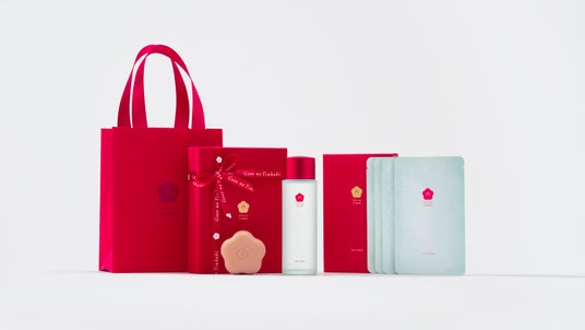 ブランドカラーの特別なボックスに「保湿水+せっけん ギフトボックス」と、新商品の「椿の葉 保湿水 フェイスマスク」をセットし、オリジナルショッパーとともにお届けいたします。
