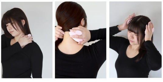 仕事の合間に、乾いた髪の上から押し当てて、頭皮に。首筋、肩や腕のほぐしに。