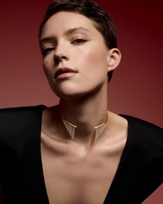 大胆ながらも繊細なシルエットとしなやかに揺れ動くダイヤモンドの煌めき。“シャンデリア”の輝きは、身にまとった瞬間にあなたを優しく包み込み、そして自由へと誘います。リブランディングを象徴する新作ファインジュエリーの輝きをぜひお楽しみください。