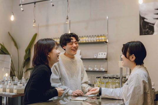 店舗では、季節に応じてご用意した数十種類の香りからお好みを選び、専属のフレグランスアドバイザーがカウンセリングを通して、その場で香りを調合。香りの組み合わせは1億1043万通り以上にのぼり、完成したフレグランスはまさに世界に一つだけの「私らしい、私だけの香り」となります。
