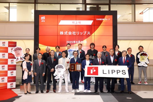 メンズコスメ商品の企画・販売、ヘアサロンFC事業を営む株式会社リップス(本社:東京都渋谷区、代表取締役:的場隆光)は、2025年6月30日(月)に東京証券取引所グロース市場(証券コード:373A)へ新規上場(IPO)いたしました。
